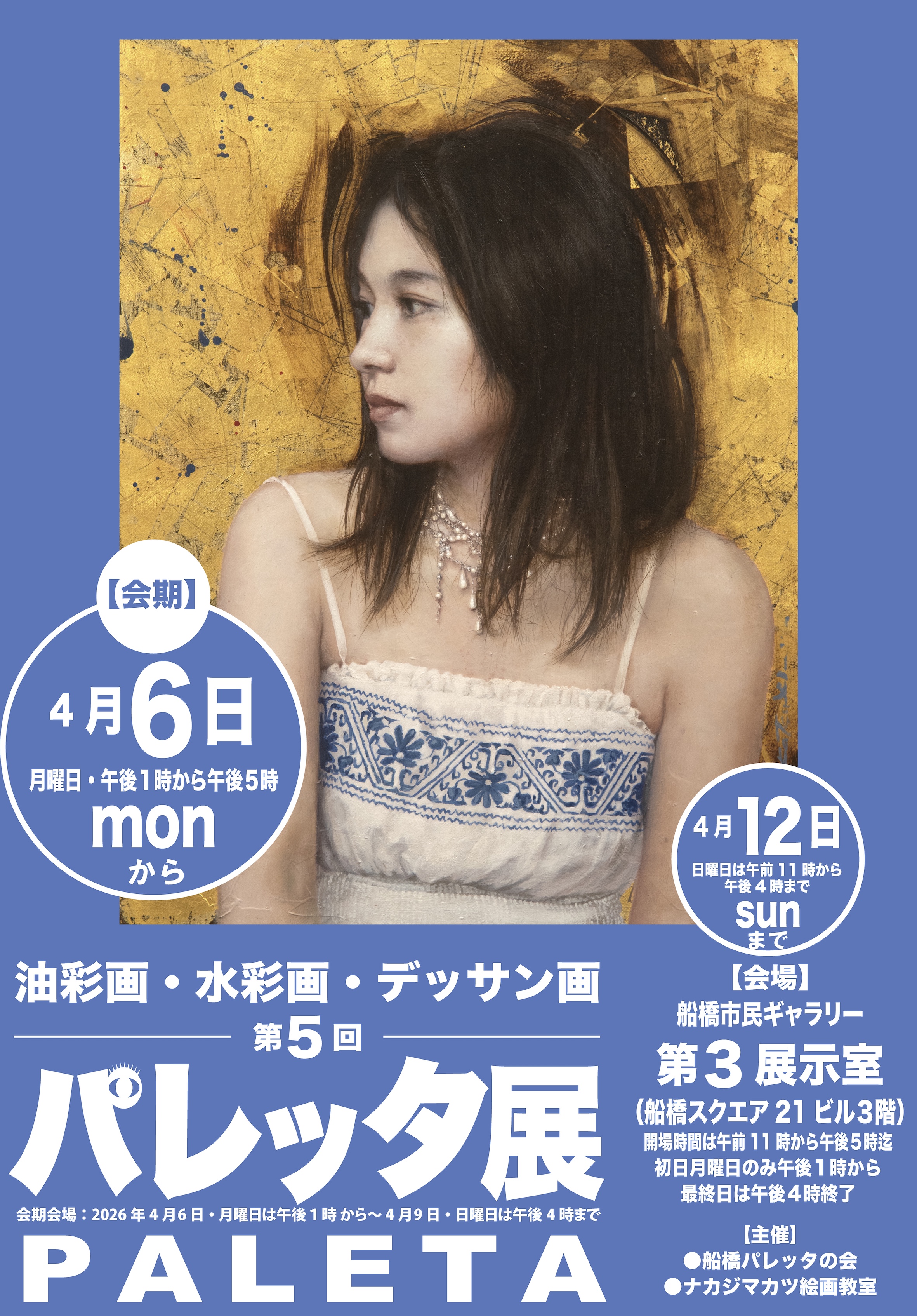 第5回パレッタ展2026年4月6日月曜日から12日日曜日まで1週間、船橋市民ギャラリー3F第3展示室にて開催予定です。生徒のみなさん、 奮って参加してくださいね。 |